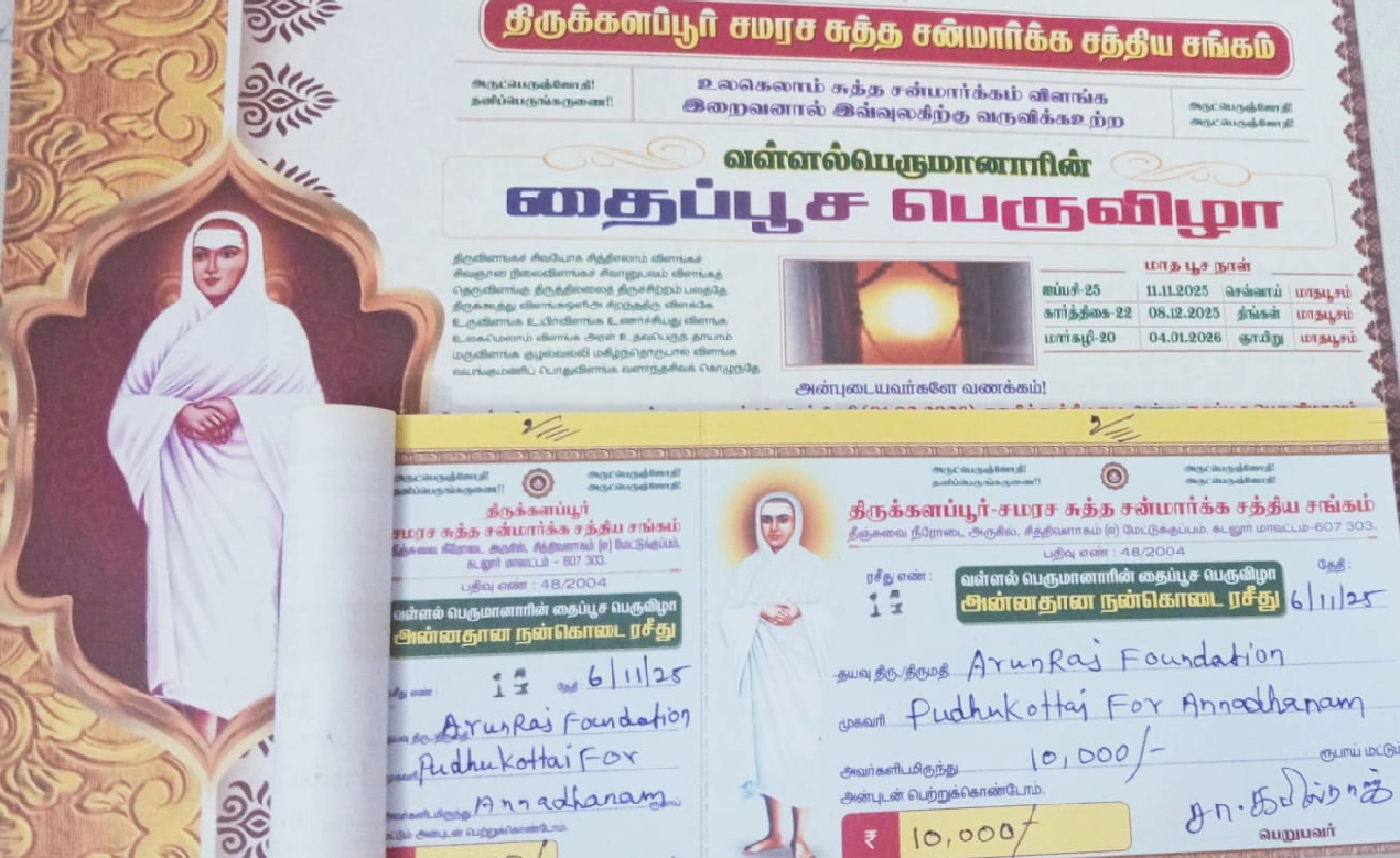 🕊 Annadhanam by Arunraj Foundation – A Day of Service and Compassion07 November 2025In collaboration with Thirukkalappur Samarasa Suththa Sanmarkka Saththiya Sankam - Registration No: 48/2004