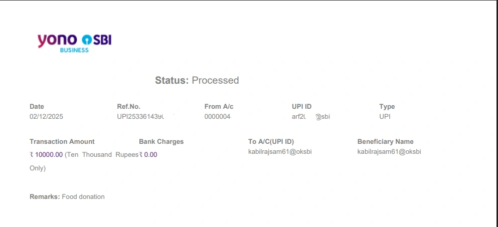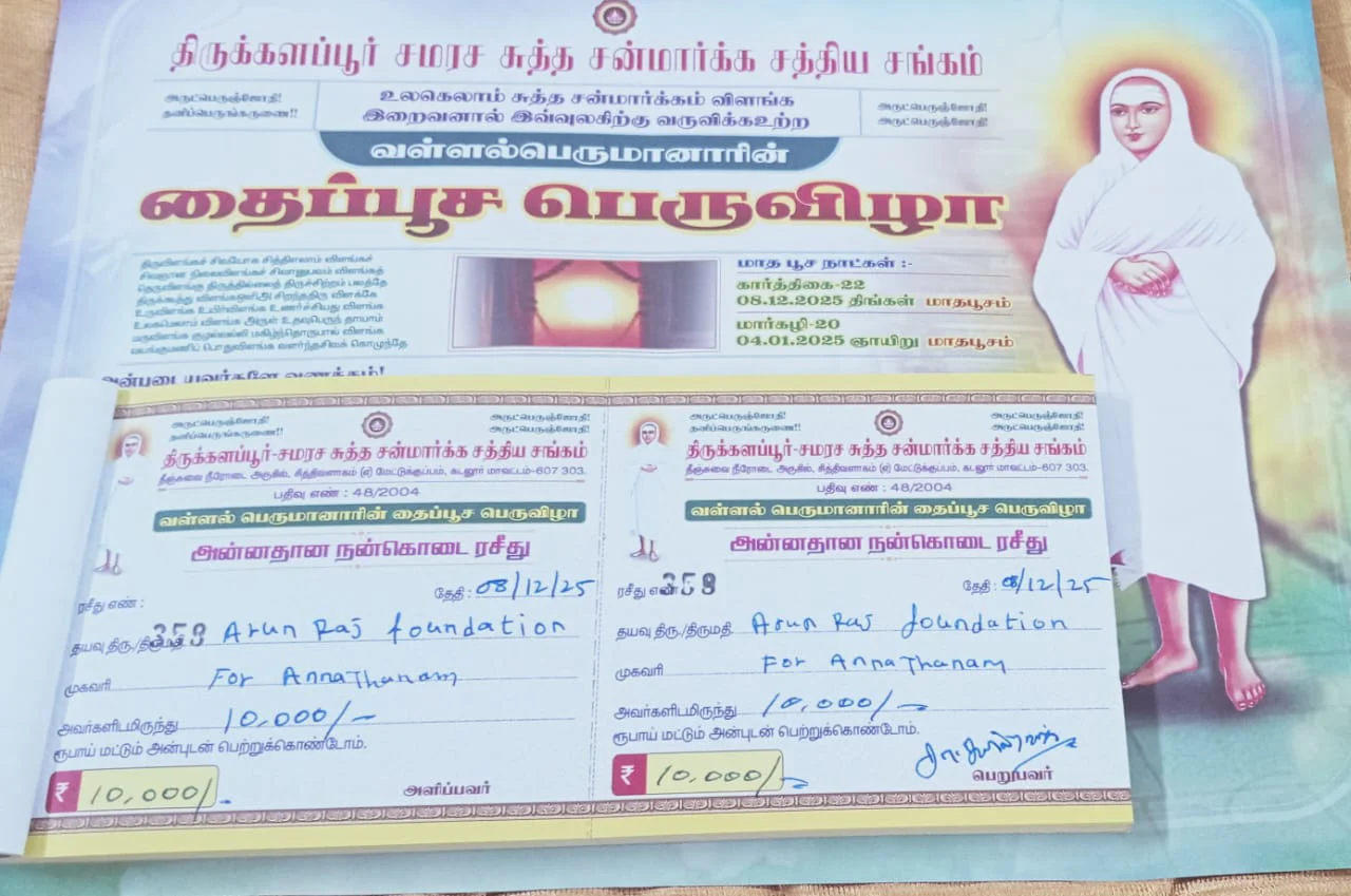 The Annadhanam program at Sanmarga Sangam stands as a reflection of the Arunraj Foundation’s unwavering commitment to humanity. Through small yet meaningful acts of kindness, the Foundation continues to create lasting positive impact in the lives of those in need.